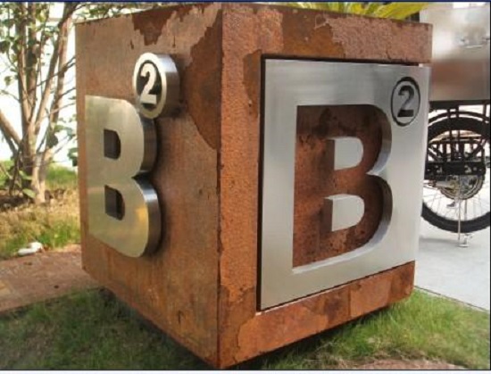 这个楼层单元牌最大的特点是突破传统。把单元牌放大化,作为一个单独的整体展示。这个楼层单元牌的基本含义就是B栋2单元。